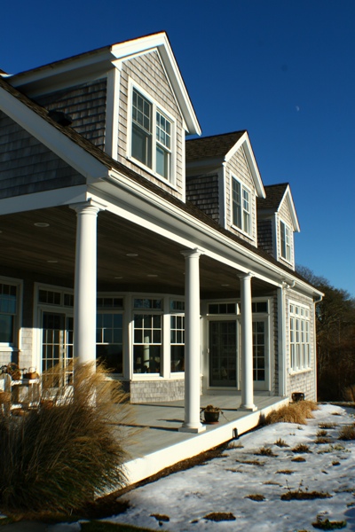 SYA+FH provided architectural services for this waterfront Cape home. SYA+FH worked hand in hand with the owner and builder to comply with strict building regulations & construction guidelines, while still maximizing Western views to beautiful Buzzards Bay. The home was built within budget.